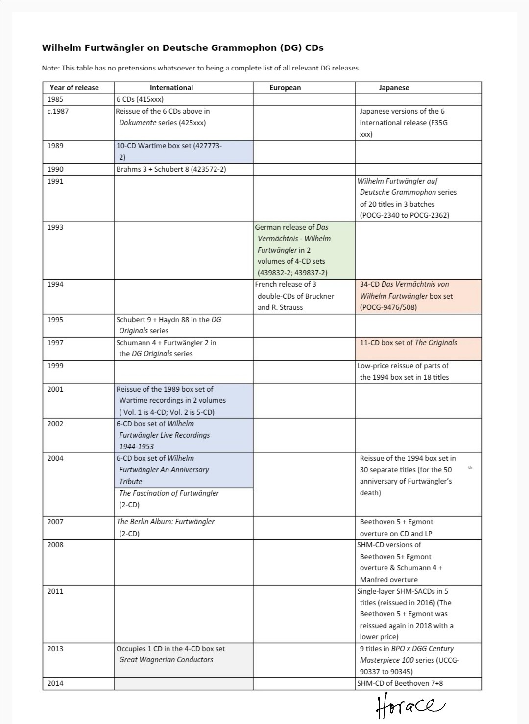 When comparisons are to be made, we should at least know what are available for this purpose. With this in mind, I have compiled a list to share with you what CDs have been released by DG both internationally and locally in Europe or Japan. As my knowledge is limited, I don’t pretend this list to be complete, and any information on what I have missed out will be much appreciated.