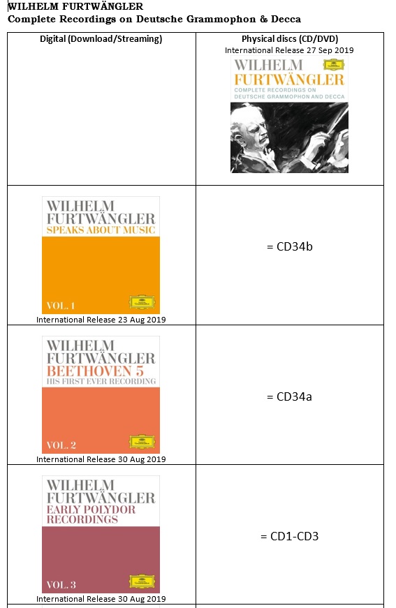 The “WILHELM FURTWÄNGLER Complete Recordings on Deutsche Grammophon & Decca” 35-disc edition will also be available via streaming and download platforms.